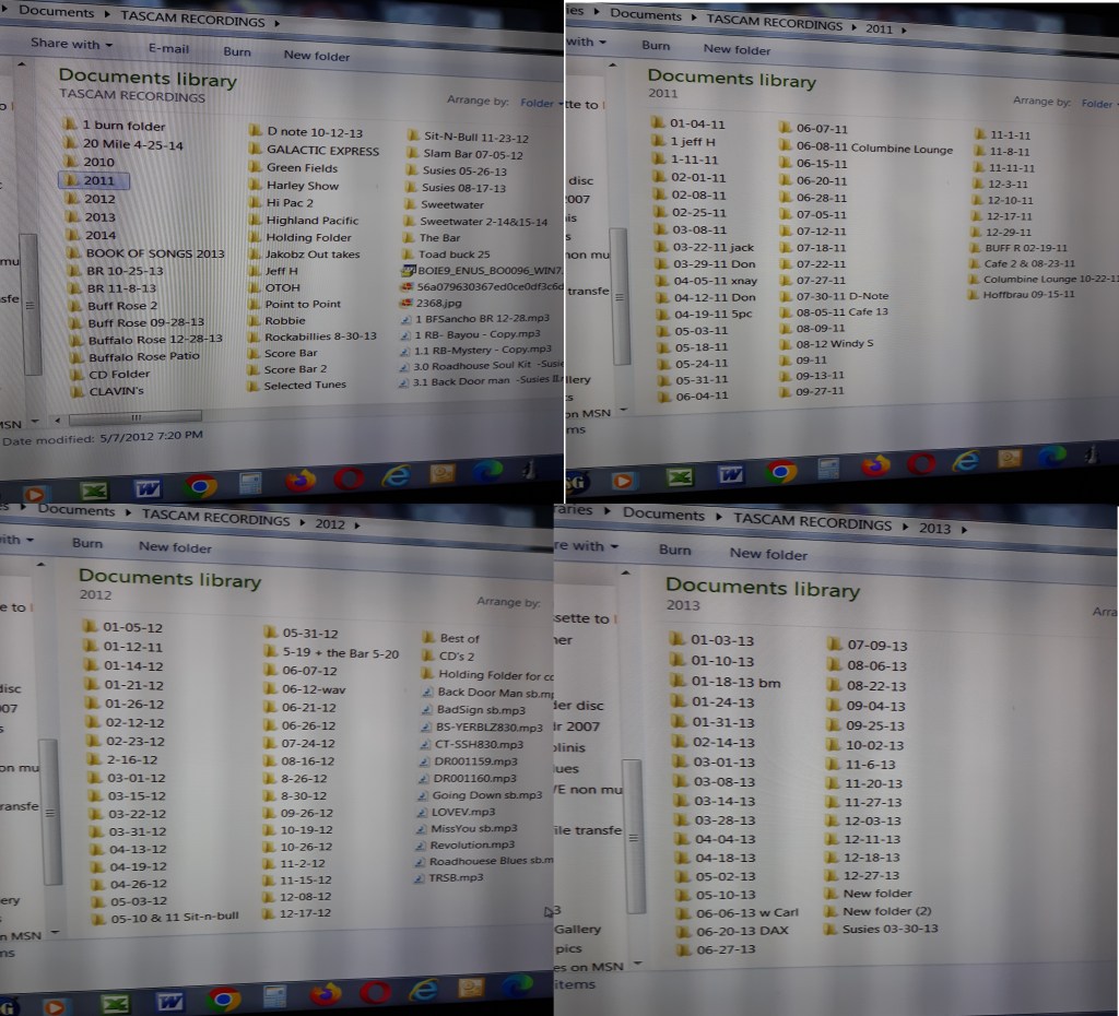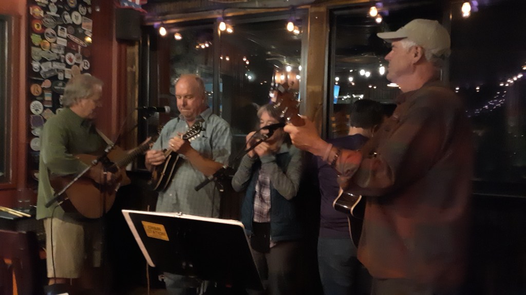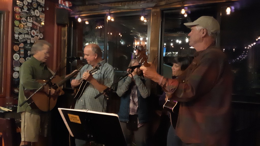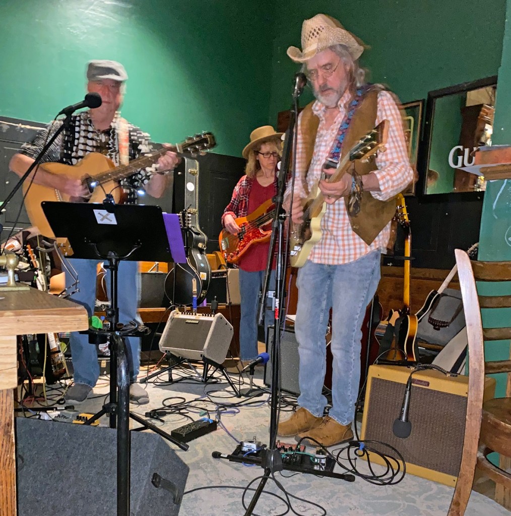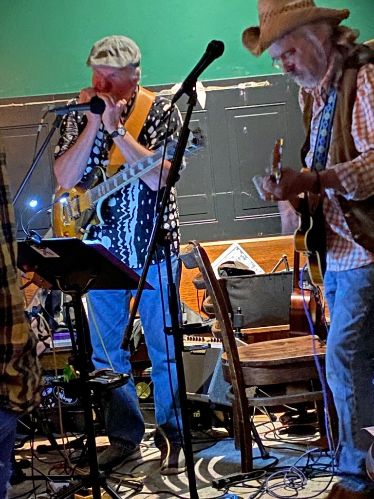 There’s a fair number of blues, a little rockabilly and old timey country….and a vast variety of various original songs. When we play a gig, I don’t use song sheets… “know your song well, before you start singing” keeps the mind working and sharp.