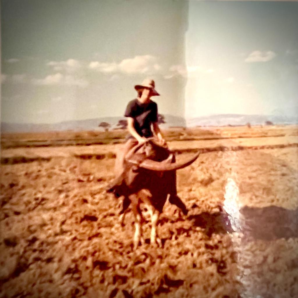 Rob Leavitt, water buffalo wrangling in the Philippines 1973