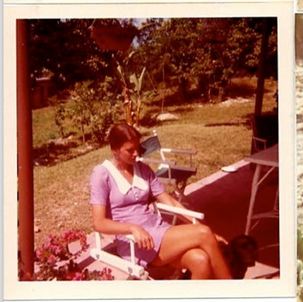 sister Betsy Leavitt on the back patio in Antigua, visiting from Boston, 1971,